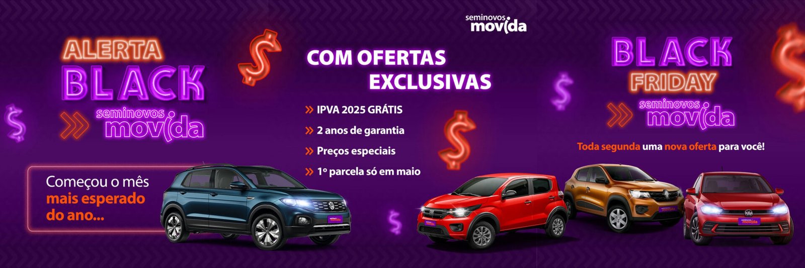 A proposta foi criar uma narrativa visual e textual focada nas diferenças dos Seminovos Movida, enfatizando confiança, procedência e condições exclusivas para o período.